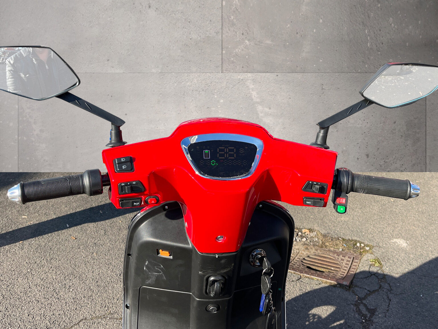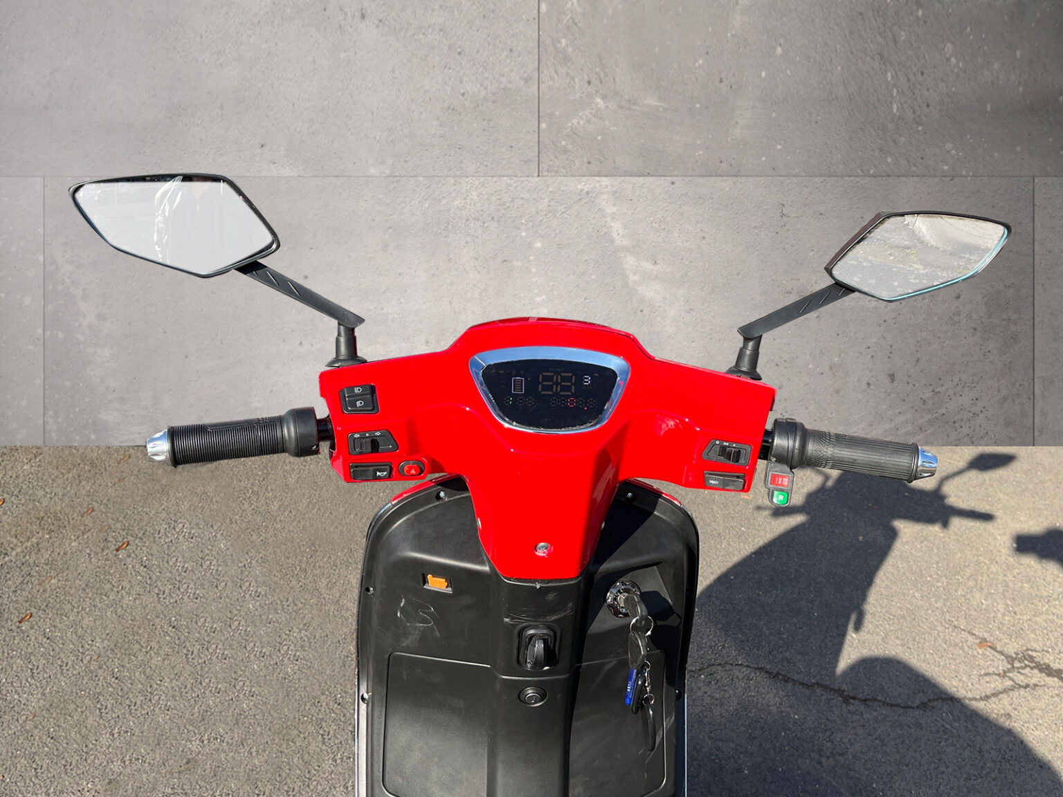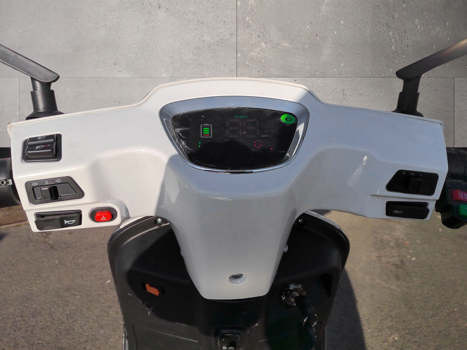 - Anzeigeinstrumente: Batterieladezustandsanzeige, Tachometer mit KM-Zähler