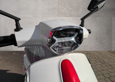 Dank seiner sehr guten Straßenlage und den zuverlässigen, kraftvollen Bremsen genießen Sie maximale Kontrolle in jeder Situation. Der Roller ist wendig und leicht, wodurch er sich mühelos durch den Stadtverkehr bewegen lässt.