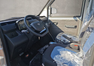 Dank stabilem Geradeauslauf, Servolenkung, ABS und Klimaanlage bietet der elektrische Klein-LKW hohen Fahrkomfort und Sicherheit – auch im täglichen Dauereinsatz. Die hohe Zuladung und die robuste Bauweise machen ihn zu einem zuverlässigen Arbeitsfahrzeug.