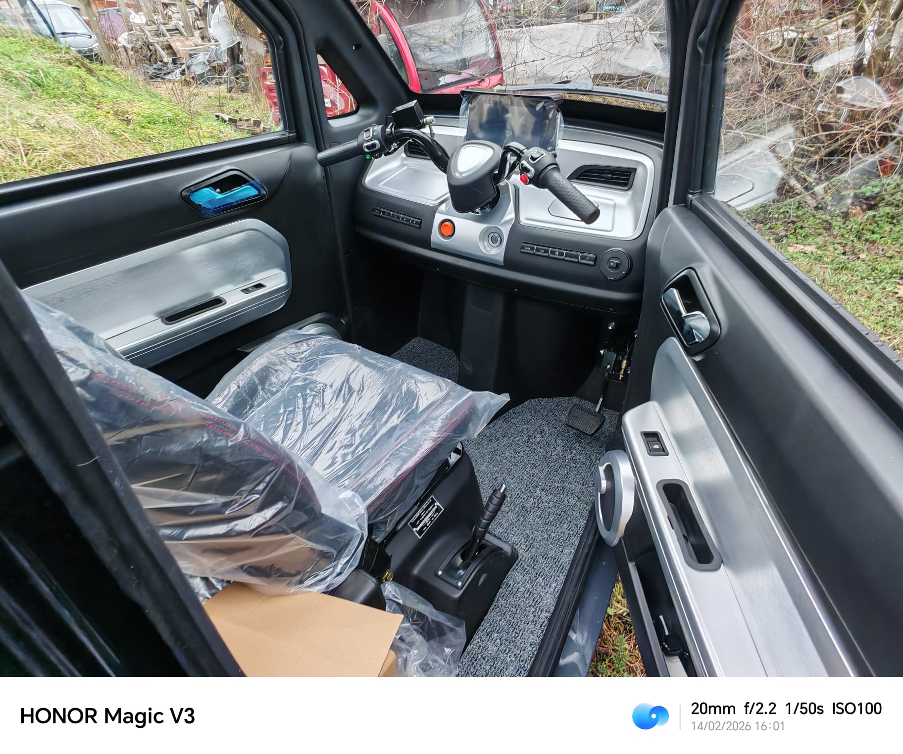 Unser Elektro-Kabinenroller bietet zusätzlichen Komfort: Dank der geschlossenen Kabine besteht hier keine Helmpflicht. Auch eine Anschnallpflicht ist bei diesem dreirädrigen Kleinkraftrad nicht vorgesehen.